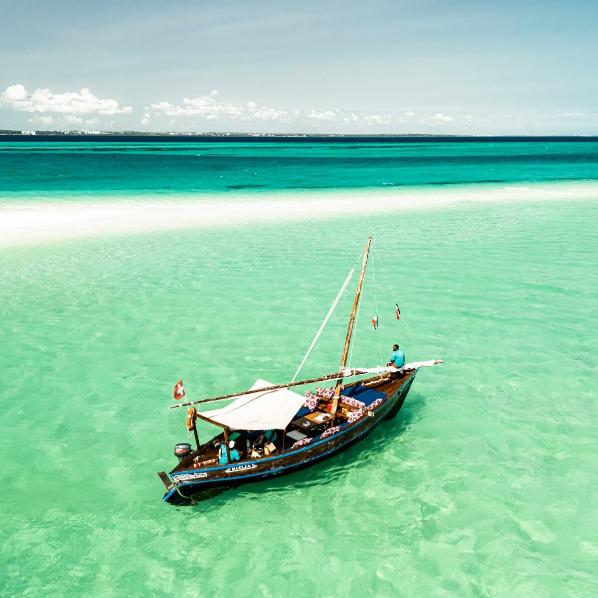 Hop aboard our comfortable dhow and enjoy a day surrounded by the breathtaking turquoise waters of the Indian Ocean